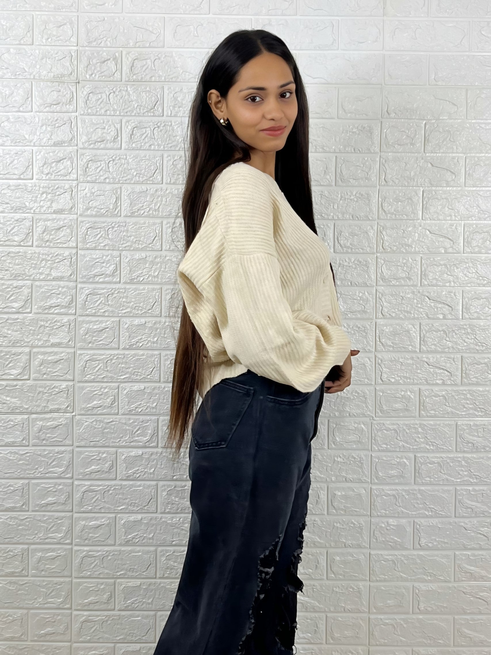 Versatile V-Neck: The classic V-neckline and button-front closure offer multiple styling options—wear it buttoned as a cozy sweater or open over a camisole or tank top.