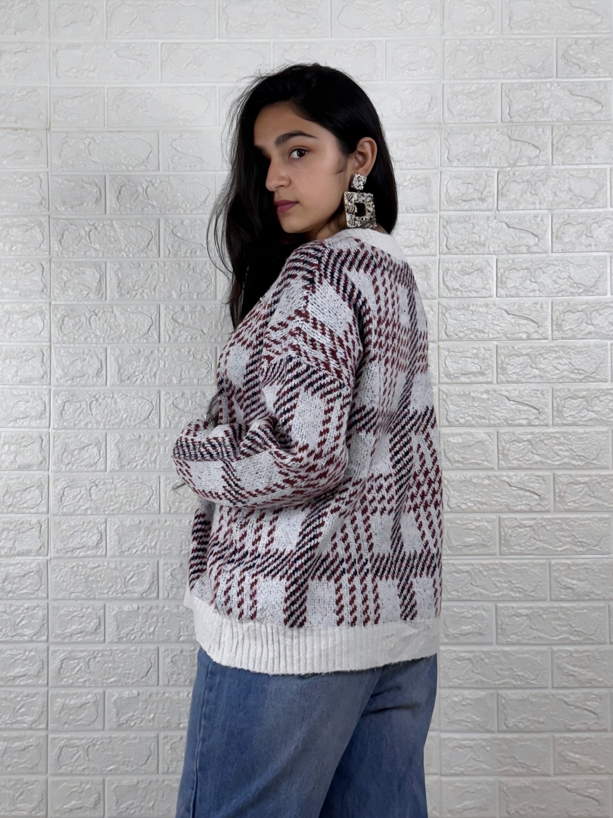 Embrace the chill in classic style with our Plaid V-Neck Sweater. This cozy knit combines a timeless pattern with a comfortable, relaxed fit, making it the perfect piece to keep you warm and stylish all season long. It's the ultimate sweater for effortless winter layering.
