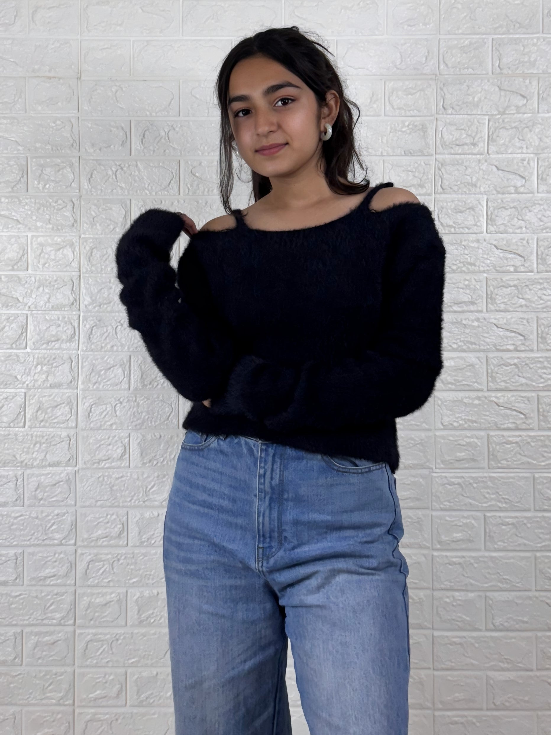 Step into comfort and modern style with this women’s color-block knitted sweater featuring a striking black and cream diagonal design. Crafted from warm and breathable knit fabric, this pullover adds a trendy touch to your winter wardrobe. The classic crew neckline, full-length sleeves, and soft ribbed cuffs offer all-day comfort, while the relaxed, slightly oversized fit makes it perfect for effortless layering. Minimal yet eye-catching, this sweater transitions seamlessly from casual days to smart-casual outfits.